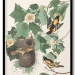 Baltimore Oriole, 1 & 2. Males, 3. Female and Nest. Icterus baltimore. Plant Vulgo, Yellow Poplar. Liriodendron tulipifera by John James Audubon (1827)