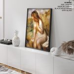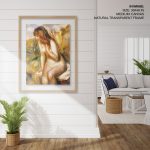 - Material: You can choose between different print mediums (Glicee paper or Canvas) and 40+ framing options that you can see on the website. Any order above 18x24 inches is processed in pinewood since synthetic wood is not able to bear its load. Wherever applicable, acrylic glass is used instead of normal glass, for its ease of handling and recyclability.