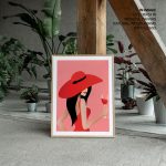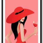Beautiful woman in red dress with vine glass - Wall Art - Choose Size & Frames, Non Toxic Home Decor - BestOfBharat