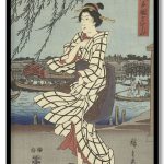 Beroemde plekken in de Oostelijke hoofdstad: Genietend van een avondbriesje bij de Ryogoku brug by Utagawa Hiroshige ( 1847- 48)