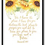 Bible Verse Wall Art Jeremiah 29:11 For I know the plans I have for you Scripture wall art Christian Home decor Sunflowers Wall Art Wall Decor