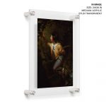 - Material: You can choose between different print mediums (Glicee paper or Canvas) and 40+ framing options that you can see on the website. Any order above 18x24 inches is processed in pinewood since synthetic wood is not able to bear its load. Wherever applicable, acrylic glass is used instead of normal glass, for its ease of handling and recyclability.