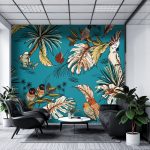 Birds and leaf - Mural Wallpaper, PVC Free, Non-Toxic - Non Toxic Wall Paper Decor, Home & Office Decor - BestOfBharat