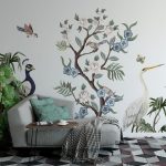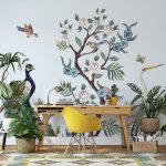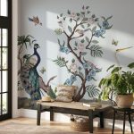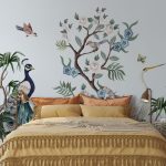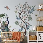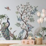 Birdy peacock jungle landscape wall mural - Non Toxic Wall Paper Decor, Home & Office Decor - BestOfBharat
