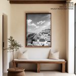 Framed Art | Black and White View of Vintage Santorini | 50+ Frame Styles • Museum Quality • Made in India