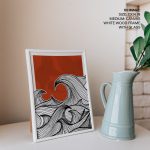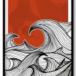 Framed Art | Black delineation thorny ocean waves | 50+ Frame Styles • Museum Quality • Made in India