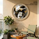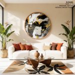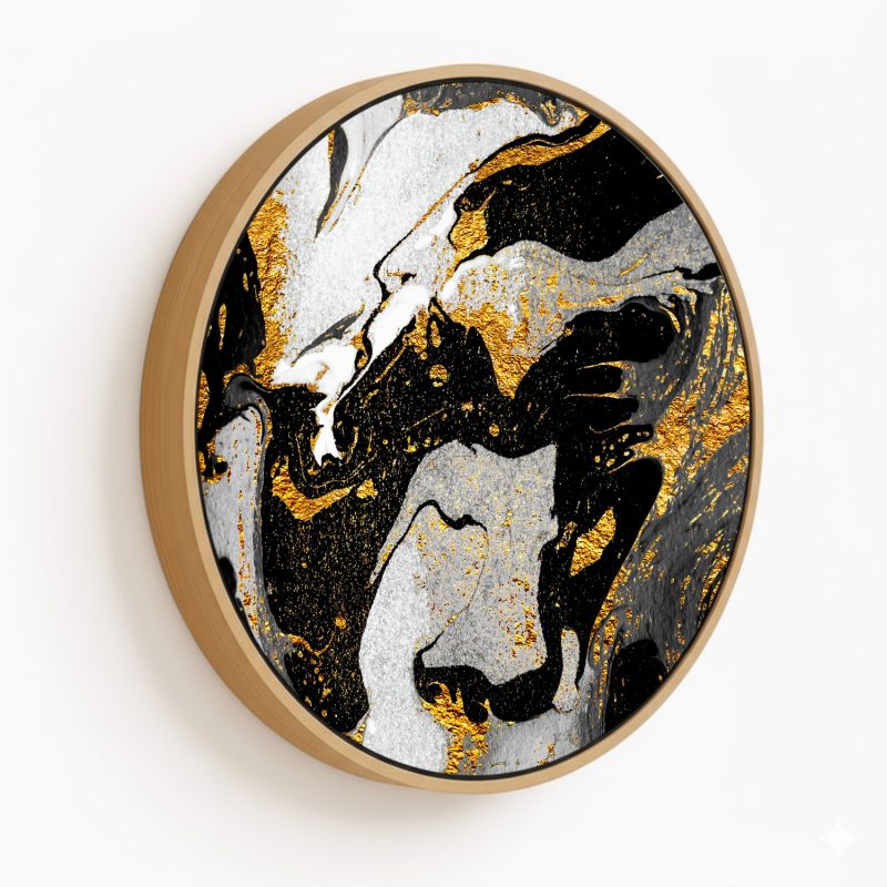 Wall Art | Black golden marble textured abstract - Circular Wooden Frame | Small to XXXL Sizes • 50+ Framing Styles • Non Toxic