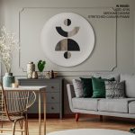 Black minimal shapes #460 - Circular Wooden Frame - Wall Art - Choose Size & Frames, Non Toxic Home Decor - BestOfBharat
