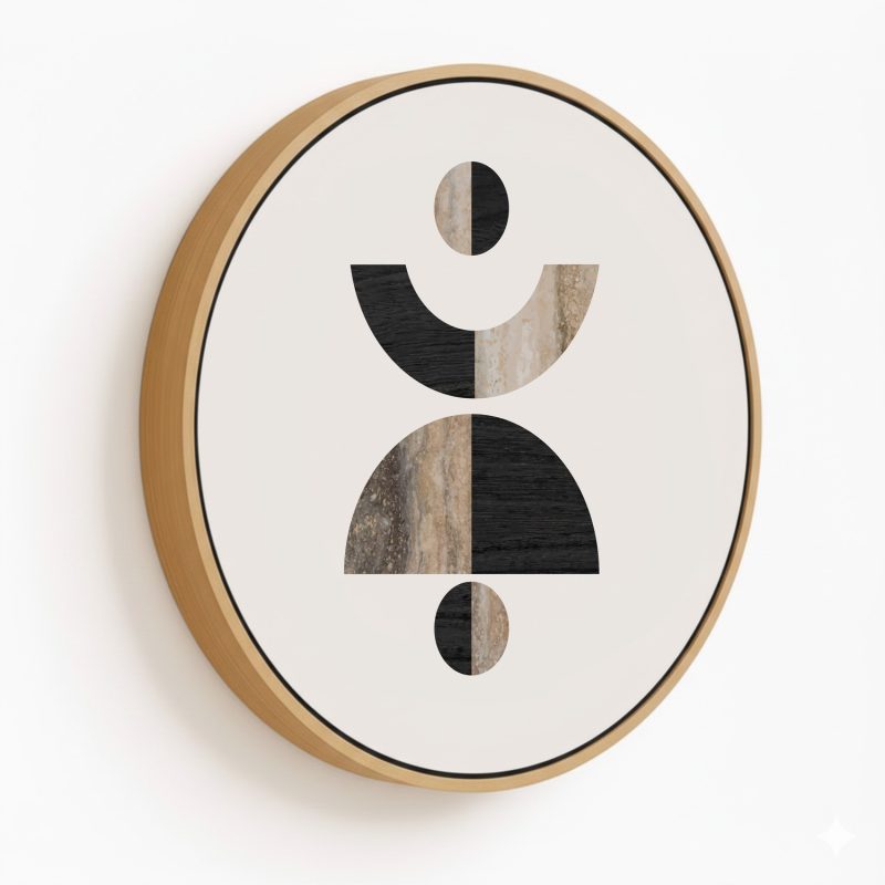 Wall Decor | Black minimal shapes #460 - Circular Wooden Frame | Custom Size & Frame • Ready to Hang • Made in India • Eco-Friendly