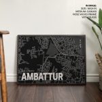 Framed Art | Black poster map of ambattur | 50+ Frame Styles • Museum Quality • Made in India