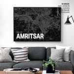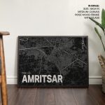 Wall Art | Black poster map of amritsar | Small to XXXL Sizes • 50+ Framing Styles • Non Toxic