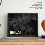 Framed Art | Black poster map of bhilai | 50+ Frame Styles • Museum Quality • Made in India