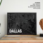 Wall Art | Black poster map of dallas | Small to XXXL Sizes • 50+ Framing Styles • Non Toxic