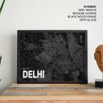 Wall Decor | Black poster map of delhi | Custom Size & Frame • Ready to Hang • Made in India • Eco-Friendly