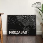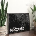 Wall Art | Black poster map of firozabad | Small to XXXL Sizes • 50+ Framing Styles • Non Toxic