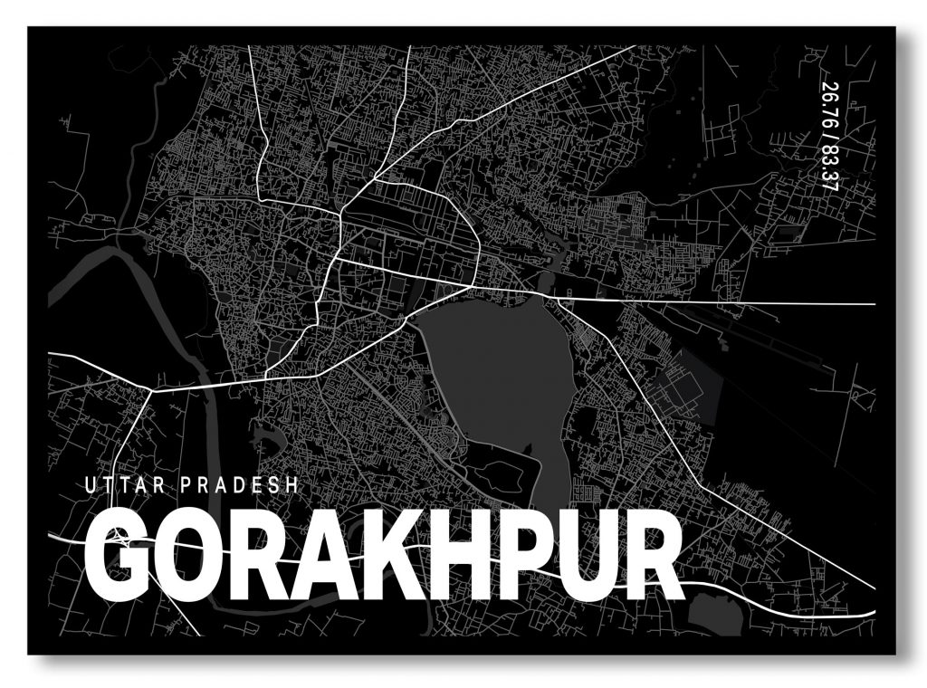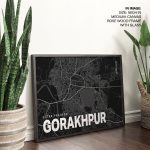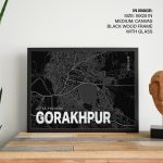 Framed Art | Black poster map of gorakhpur | 50+ Frame Styles • Museum Quality • Made in India