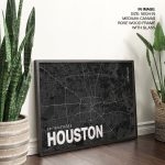 Framed Art | Black poster map of houston | 50+ Frame Styles • Museum Quality • Made in India