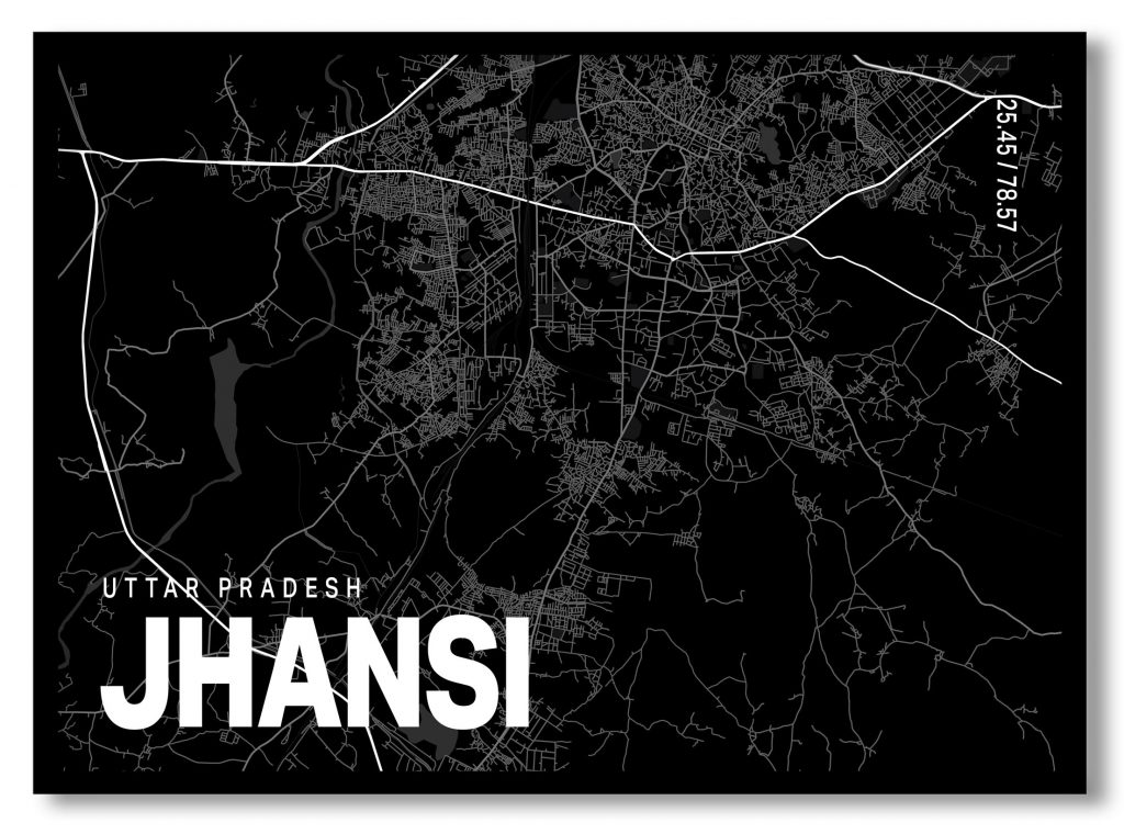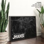 Wall Decor | Black poster map of jhansi | Custom Size & Frame • Ready to Hang • Made in India • Eco-Friendly