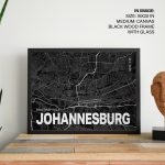 Wall Art | Black poster map of johannesburg | Small to XXXL Sizes • 50+ Framing Styles • Non Toxic