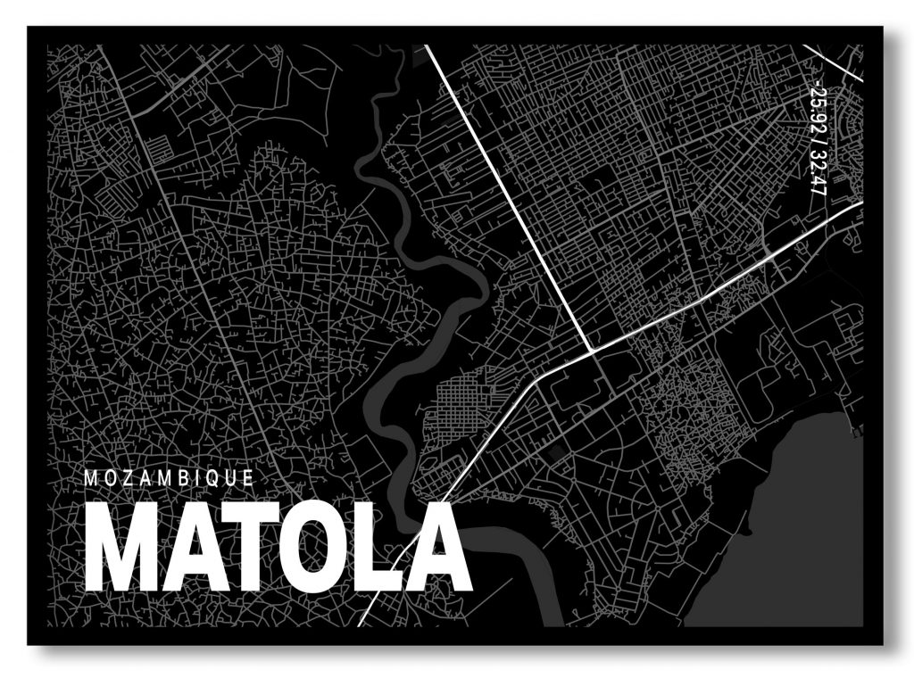 Wall Art | Black poster map of matola | Small to XXXL Sizes • 50+ Framing Styles • Non Toxic