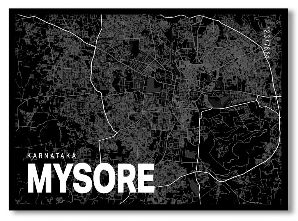 Wall Decor | Black poster map of mysore | Custom Size & Frame • Ready to Hang • Made in India • Eco-Friendly