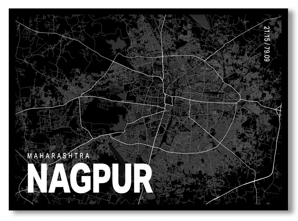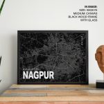 Framed Art | Black poster map of nagpur | 50+ Frame Styles • Museum Quality • Made in India