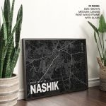 Wall Art | Black poster map of nashik | Small to XXXL Sizes • 50+ Framing Styles • Non Toxic