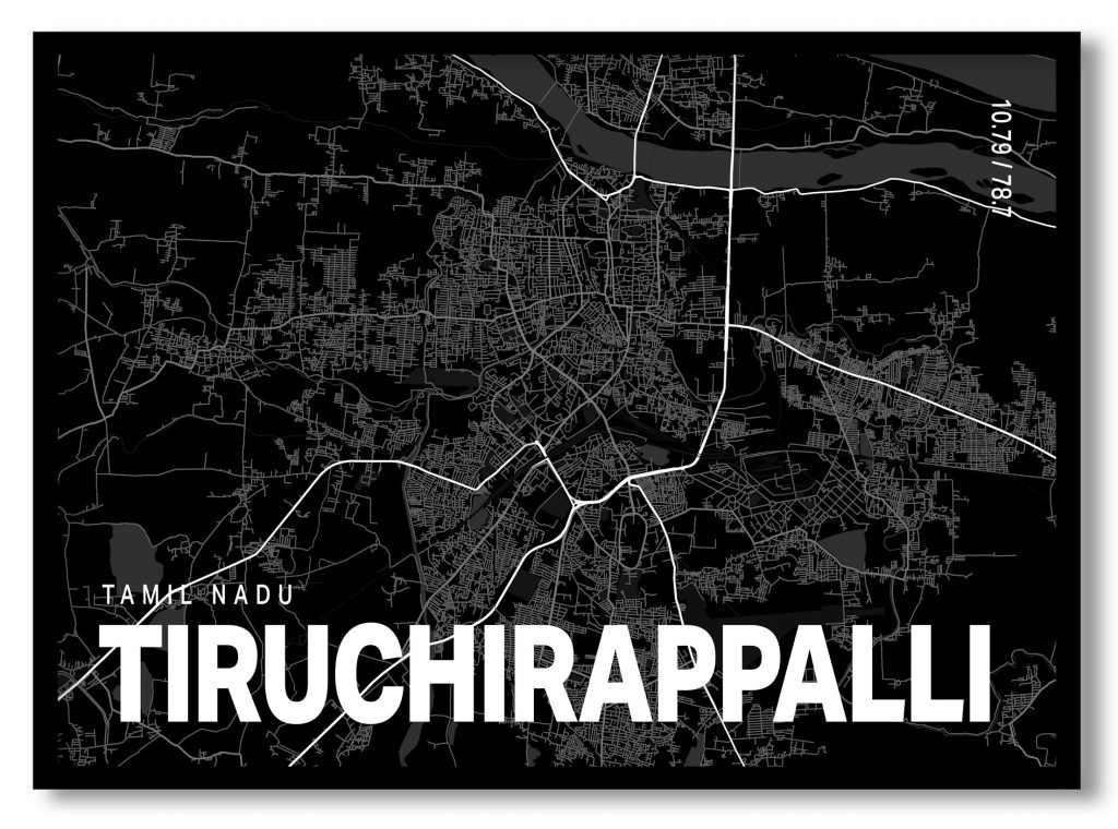 Wall Art | Black poster map of tiruchirappalli | Small to XXXL Sizes • 50+ Framing Styles • Non Toxic