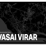 Wall Decor | Black poster map of vasai virar | Custom Size & Frame • Ready to Hang • Made in India • Eco-Friendly