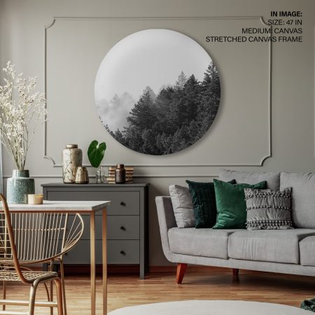 Wall Art | Black & White Forest Nordic Art - Circular Wooden Frames | Small to XXXL Sizes • 50+ Framing Styles • Non Toxic