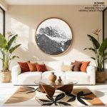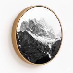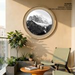 Wall Decor | Black & White Mountains Nordic Art - Circular Wooden Frames | Custom Size & Frame • Ready to Hang • Made in India • Eco-Friendly