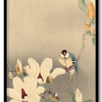 Blue Bird and Magnolia by Ohara Koson (Date Unknown) - Wall Art - Choose Size & Frames, Non Toxic Home Decor - BestOfBharat