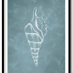Blue hand drawn seashell #32 - Wall Art - Choose Size & Frames, Non Toxic Home Decor - BestOfBharat