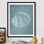 Blue hand drawn seashell #35 - Wall Art - Choose Size & Frames, Non Toxic Home Decor - BestOfBharat