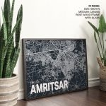 Wall Decor | Blue poster map of amritsar | Custom Size & Frame • Ready to Hang • Made in India • Eco-Friendly