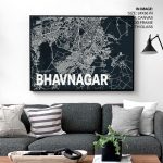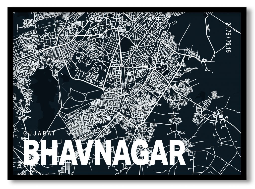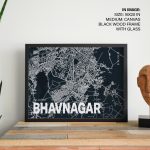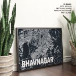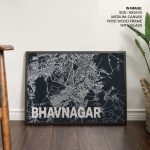 Wall Decor | Blue poster map of bhavnagar | Custom Size & Frame • Ready to Hang • Made in India • Eco-Friendly