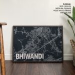 Wall Decor | Blue poster map of bhiwandi | Custom Size & Frame • Ready to Hang • Made in India • Eco-Friendly