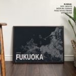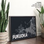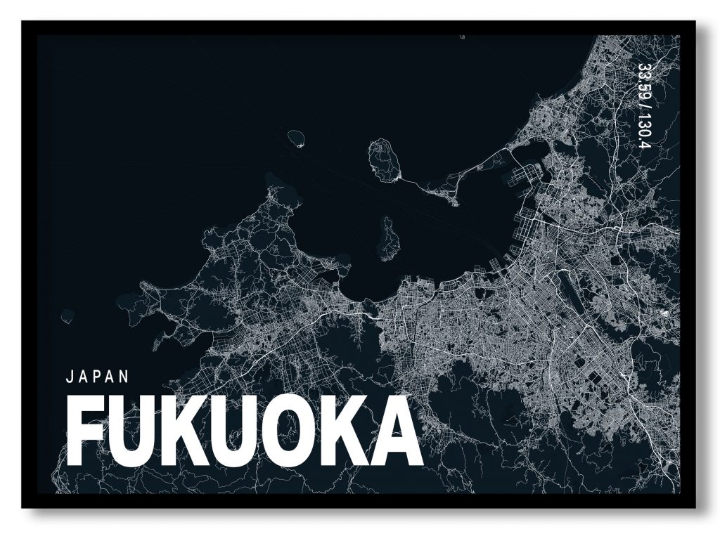Framed Art | Blue poster map of fukuoka | 50+ Frame Styles • Museum Quality • Made in India