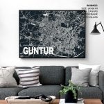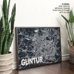 Wall Decor | Blue poster map of guntur | Custom Size & Frame • Ready to Hang • Made in India • Eco-Friendly