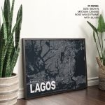 Wall Art | Blue poster map of lagos | Small to XXXL Sizes • 50+ Framing Styles • Non Toxic