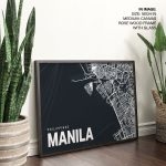 Framed Art | Blue poster map of manila | 50+ Frame Styles • Museum Quality • Made in India
