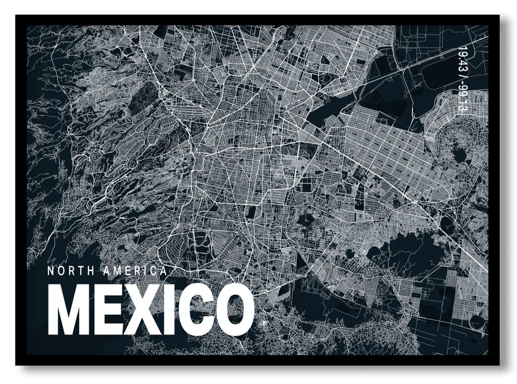 Wall Decor | Blue poster map of mexico | Custom Size & Frame • Ready to Hang • Made in India • Eco-Friendly
