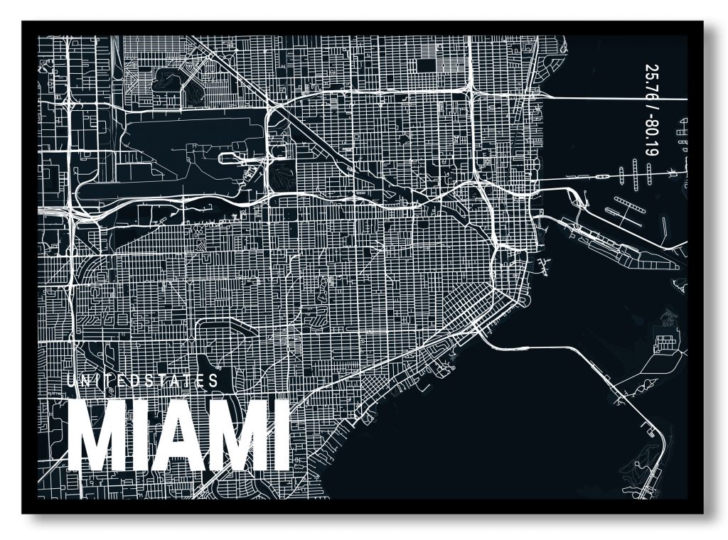 Wall Art | Blue poster map of miami | Small to XXXL Sizes • 50+ Framing Styles • Non Toxic