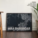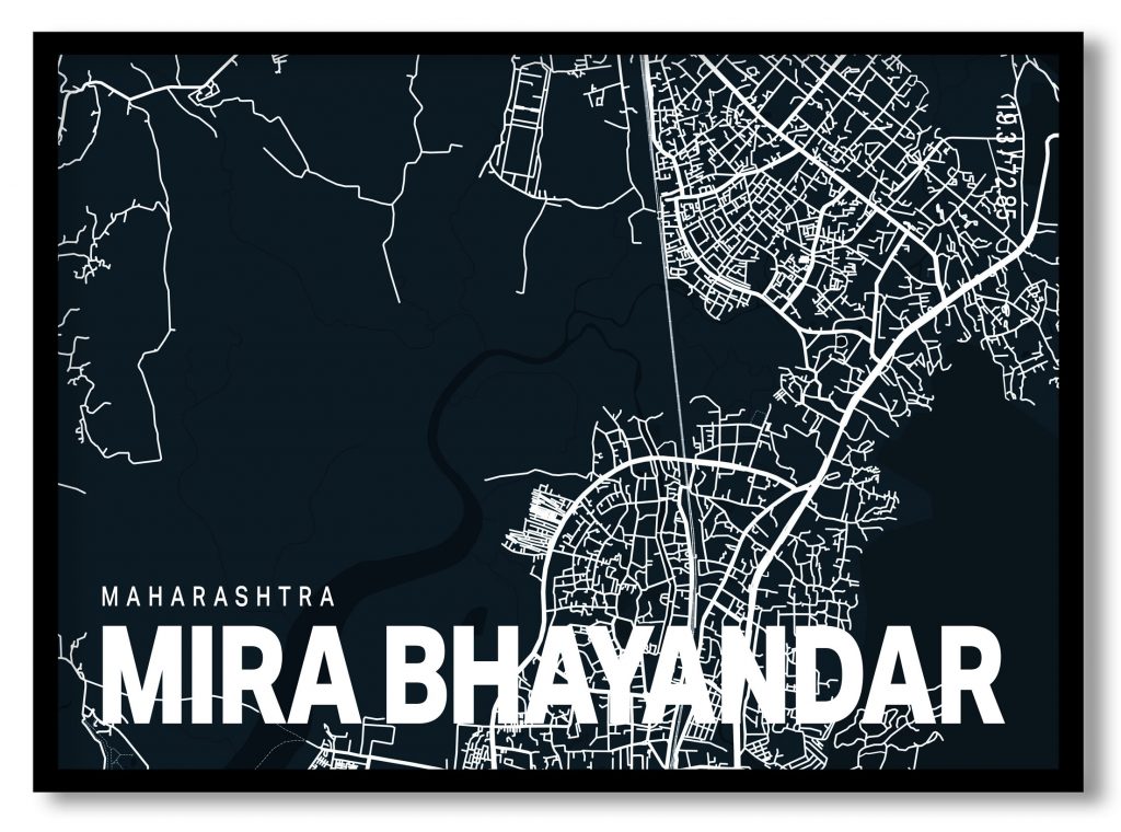 Wall Decor | Blue poster map of mira bhayandar | Custom Size & Frame • Ready to Hang • Made in India • Eco-Friendly