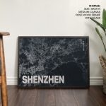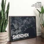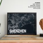 Wall Decor | Blue poster map of shenzhen | Custom Size & Frame • Ready to Hang • Made in India • Eco-Friendly