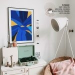 Wall Art | Blue yellow modern abstract exotic leaves | Small to XXXL Sizes • 50+ Framing Styles • Non Toxic