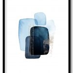 Wall Decor | Blush blue minimalistic watercolor golden elements #652 | Custom Size & Frame • Ready to Hang • Made in India • Eco-Friendly