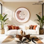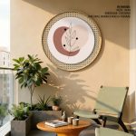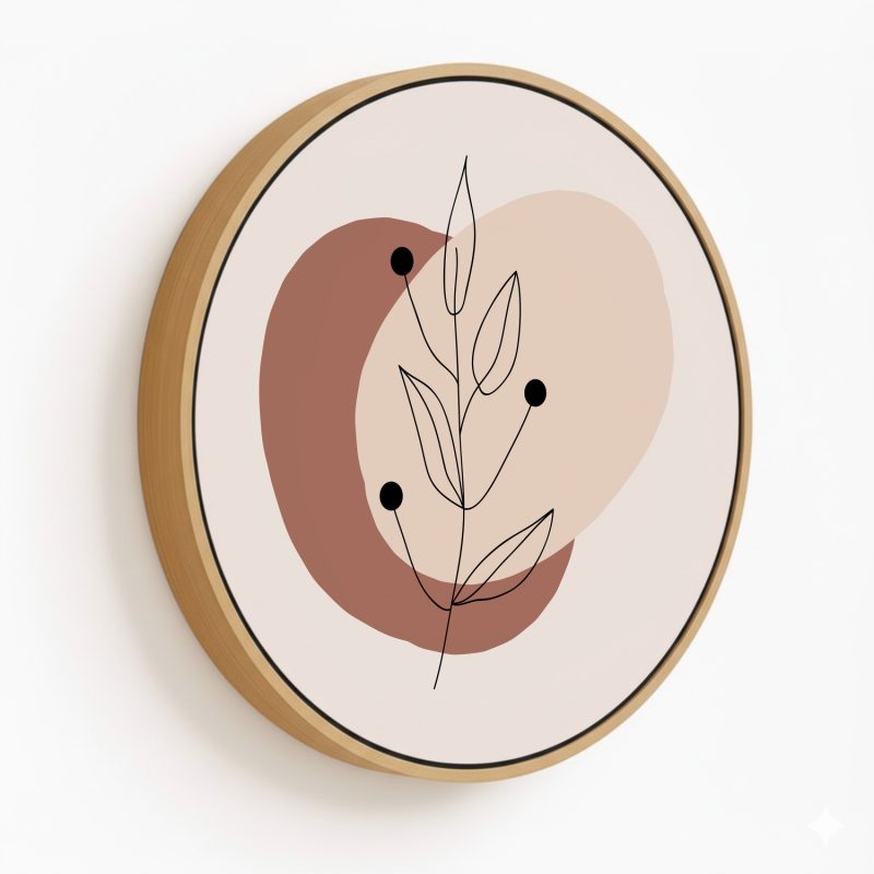 Framed Art | Bohemian line drawing leaves #223 - Circular Wooden Frame | 50+ Frame Styles • Museum Quality • Made in India