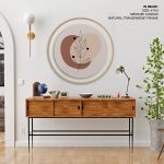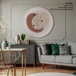 Framed Art | Bohemian line drawing leaves #223 - Circular Wooden Frame | 50+ Frame Styles • Museum Quality • Made in India