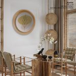 Wall Decor | Bohemian line drawing leaves #226 - Circular Wooden Frame | Custom Size & Frame • Ready to Hang • Made in India • Eco-Friendly